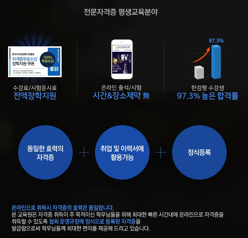 - 단, 시험에 합격을 하고 자격증 발급을 희망하면 발급비는 본인 부담입니다.